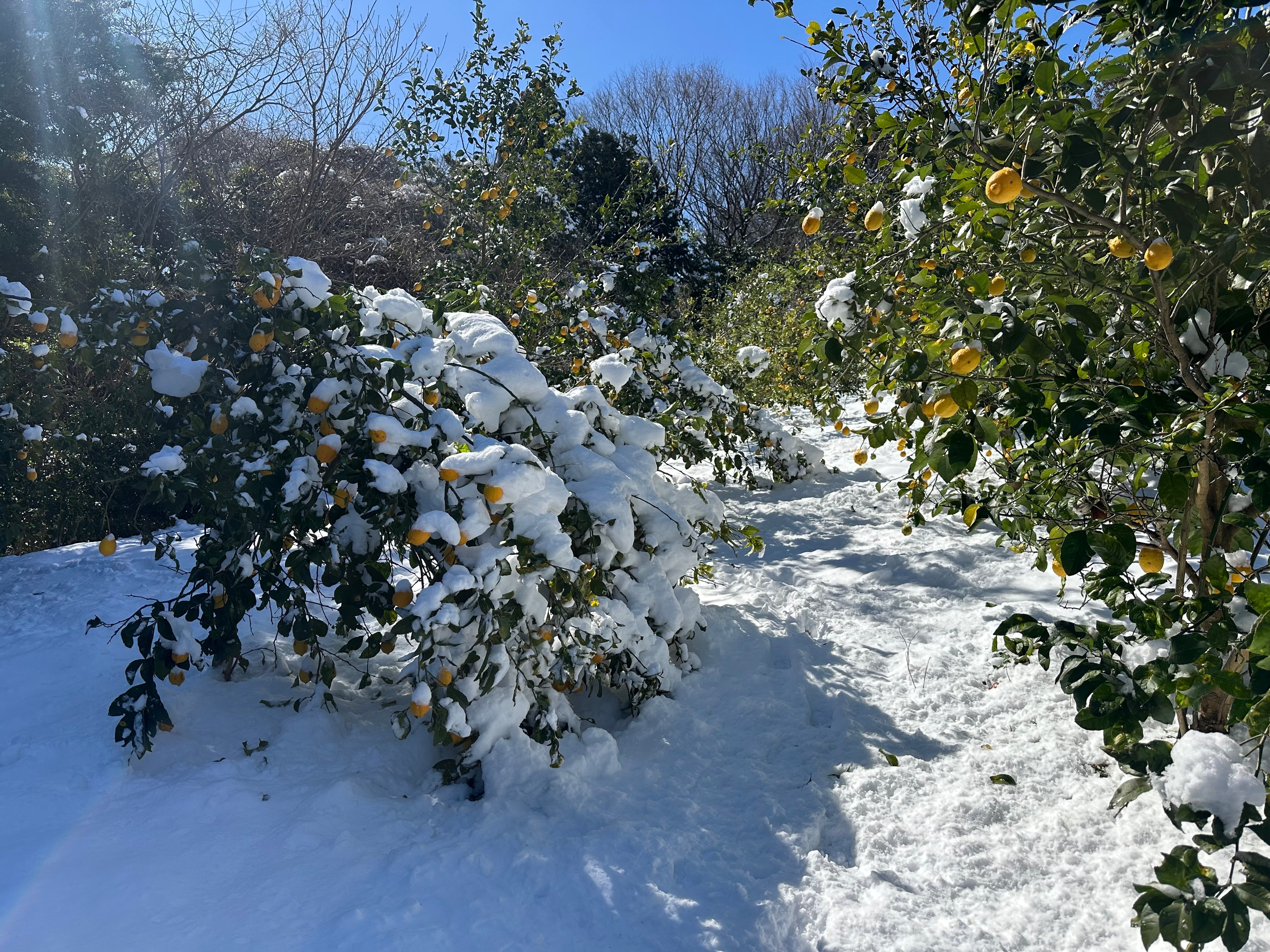 小田原で12年ぶりと言われる大雪が降り、畑のレモンにも影響が出てしまいました。幸い、すべてがダメになったわけではなく、無事だったレモンもあります。